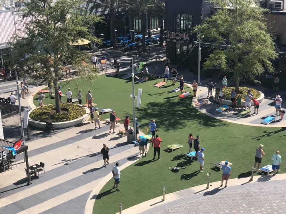 While charity rides are an opportunity for riders to support worthy causes while enjoying wonderful comradery, it’s not without a great deal of dedication and effort in the months leading up to ride day. Personally, the only thing that motivates me to ride long distances is riding for charity … perhaps because it prevents people from questioning my sanity – although I am often asked, “Can’t you just write a check instead?” Everyone who rides is required to raise a minimum amount of funds (in addition to the registration fee), which in itself can be a challenge. Although I am a fundraiser by profession, I don’t have access to the same network of donors as I do in my work. Many of the participating riders aren’t comfortable asking for money, and yet everyone finds a way to ensure Nona Cycle leads the way in fundraising. Five years ago, Nona Brew Crew launched an annual Cornhole Tournament as a way to fundraise for Tour de Cure. This year, the event was moved to Town Center, sold out, and not only raised funds for the Nona Cycle team but helped promote Nona Cycle and our dedication to supporting our community.