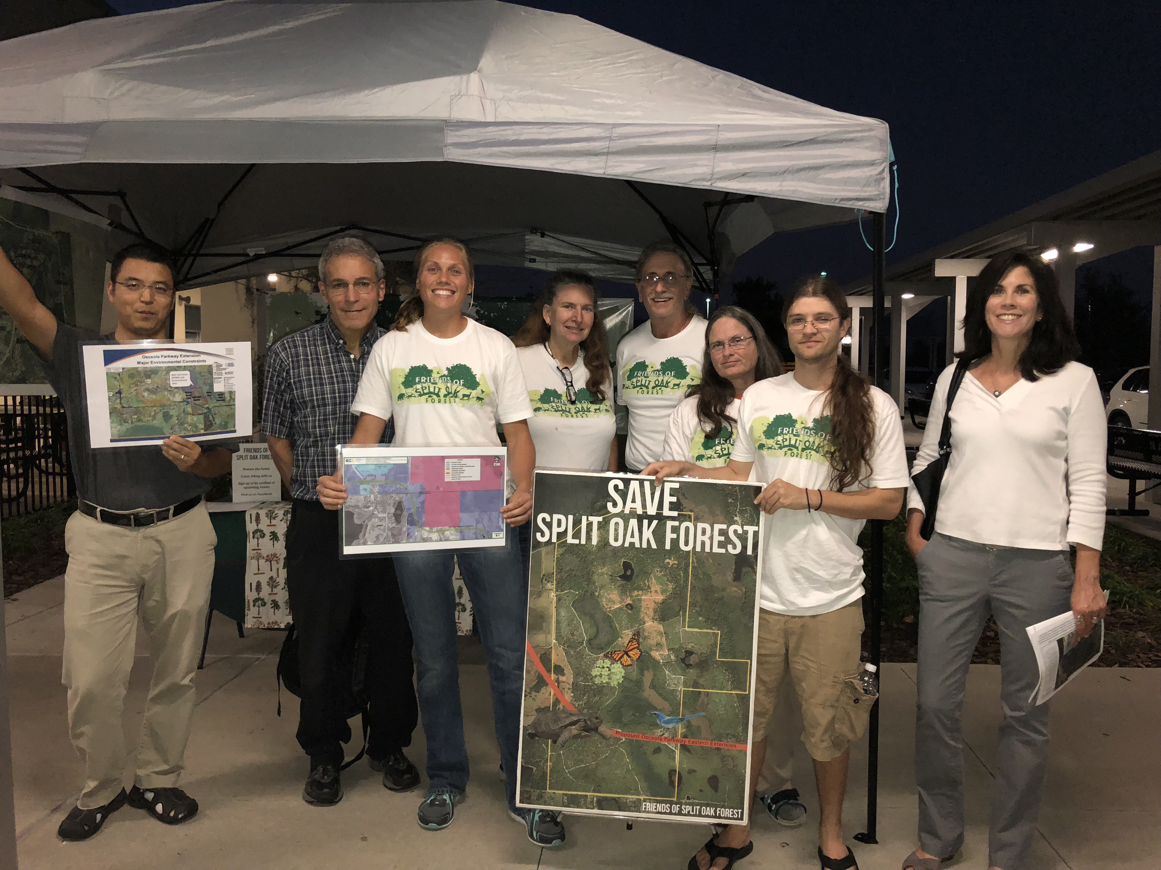 Next, I met with Suzanne Arnold, communications chair for the Lake Mary Jane Alliance. Their group works beside the Friends of Split Oak. “I totally respect their position – don’t go through the forest, it’s conservation land and a mitigation area purchased with money used to entomb gopher tortoises. Unfortunately, putting an expressway through a conservation area is not a precedent-setting issue, and it’s important to respect homeowners in surrounding communities as well. If a road must go through, an alternative route has been created that has the least impact to Split Oak and includes additional conservation lands to buffer Split Oak, Moss Park, and Isle of Pines Preserve. In the bigger picture, this would benefit Central Florida.”