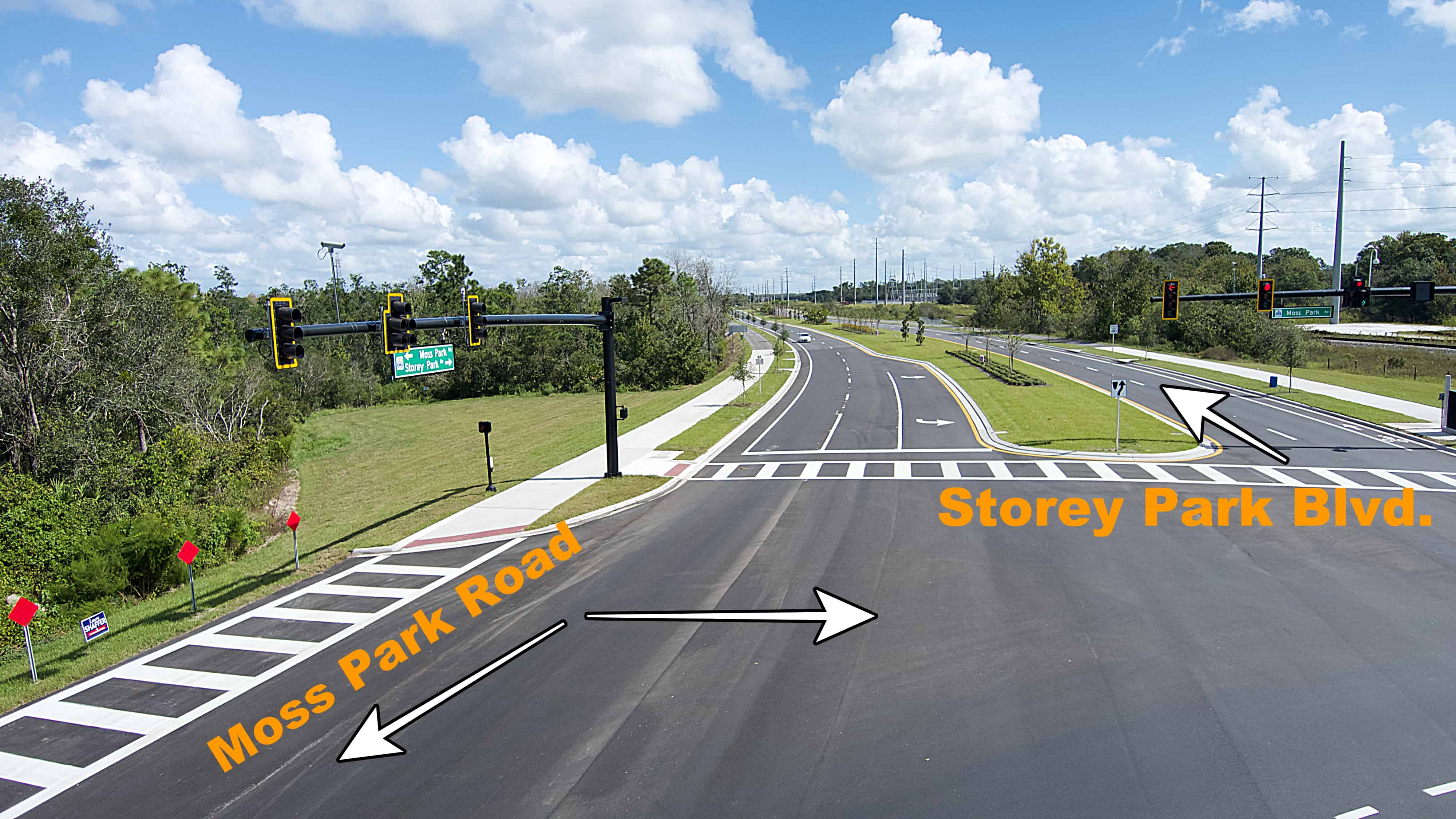 When was the last time you drove on Moss Park Road? For neighbors in communities near North Shore and Isle of Pines, Moss Park Road is a main artery that commuters use for travel to Narcoossee Road or the 417 Expressway. For more than a year, road construction made commuting this area a bit stressful. Changing road patterns during construction, one-way road usage, more congestion … and finally the intersection of Moss Park Road and Storey Park Boulevard is complete.