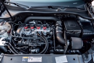 - Engine wise, there is a KO4 turbo, ECU and TCU tunes, a full Billy Boat catted with resonated turbo back exhaust, stage-one Neuspeed cold air intake with stage-two Spulen intake to turbo, CTS oil catch can, Neuspeed boost pipes, Forge FMIC, Audi R8 coil packs with upgraded plugs, Porsche oil cap, Audi coolant with windshield fluid caps, and an ECS polished oil dipstick.