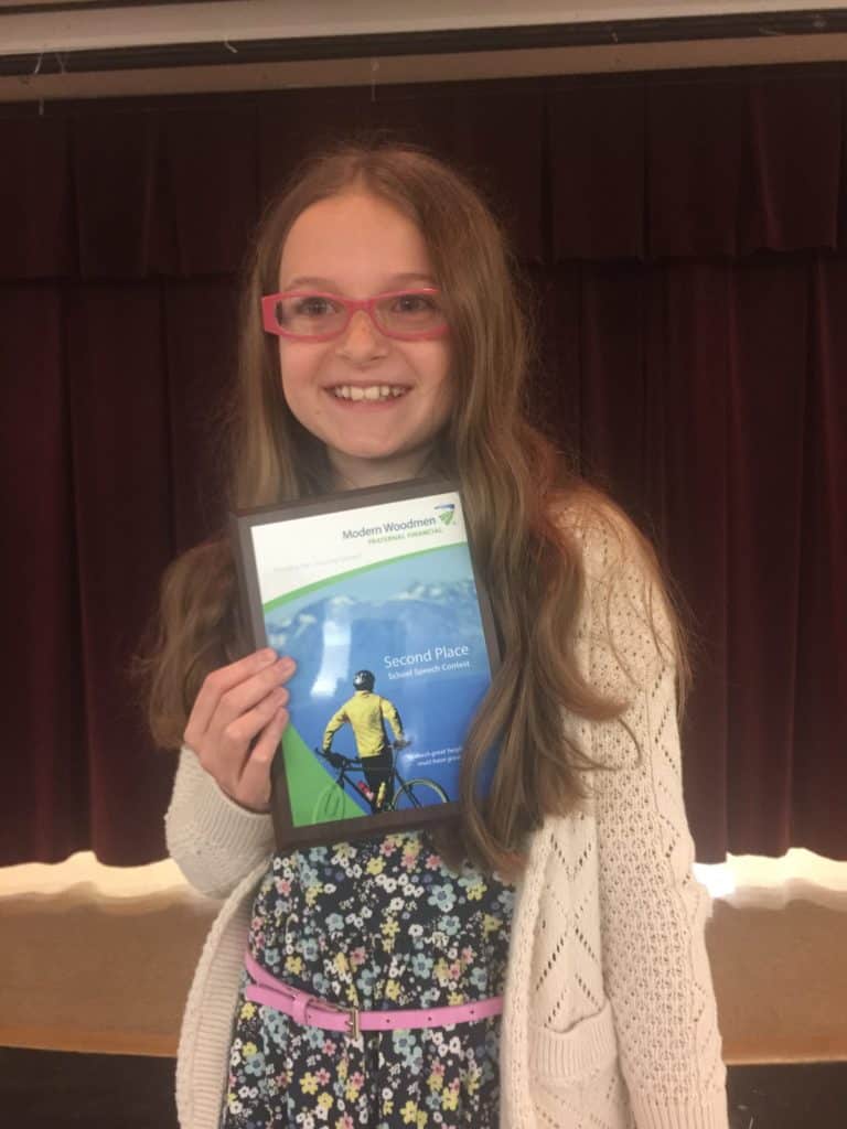 Fifth-grade students had to prepare and practice a speech on the topic, “Challenges we face versus previous generations.” All students presented their speeches in their homerooms to determine a class winner. Each classroom winner then advanced to the school level competition. The eight class finalists gave their speeches on the cafeteria stage in front of 200 of their peers and parents. Subjects included divorce in the social media age, self-esteem, stress, dangers of too much screen time, not enough outdoor playtime, poverty, gun violence in schools, and fast food. To become a better speaker, the students used strategies by planning appropriately, practicing (and practicing some more) and engaging with their audience. All the finalists did a fantastic job! Congratulations to the first and second place winners, Olivia Gutierrez and Hannah Aglio!