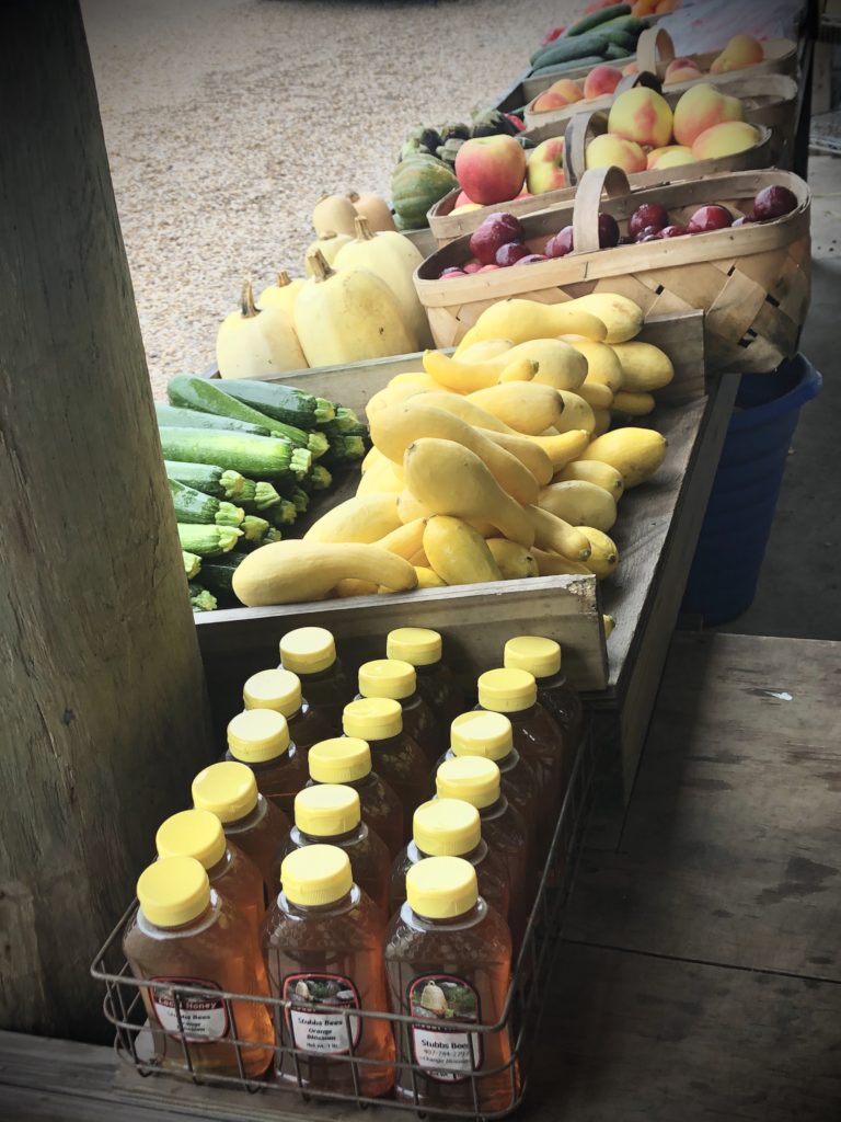 Mick Farms is also the place I had seen so many people take beautiful sunflower pictures last fall! While the sunflowers still have a few months to bloom (the owners said September is the best time), the farm is filled to the brim with an amazing selection of home-grown seasonal produce, homemade pickles (they had garlic ones when we went), and assorted canned goods (jalapeno green tomatoes, anyone?). They also do u-pick pumpkins and u-pick strawberries. (We had just missed strawberry season but will mark our calendar to go back next year.)