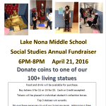 Lake Nona Middle School Social Studies Annual Fundraiser "Knight at the Living Museum" Donate coins to one of our 100+ living statues Food and drink will be available for purchase. Buy tokens 4 for $1 or 24 for $5. Cash or credit accepted. Tokens will be placed in individual student's collection boxes. Top 3 statues win awards. No purchase … [Read more...]