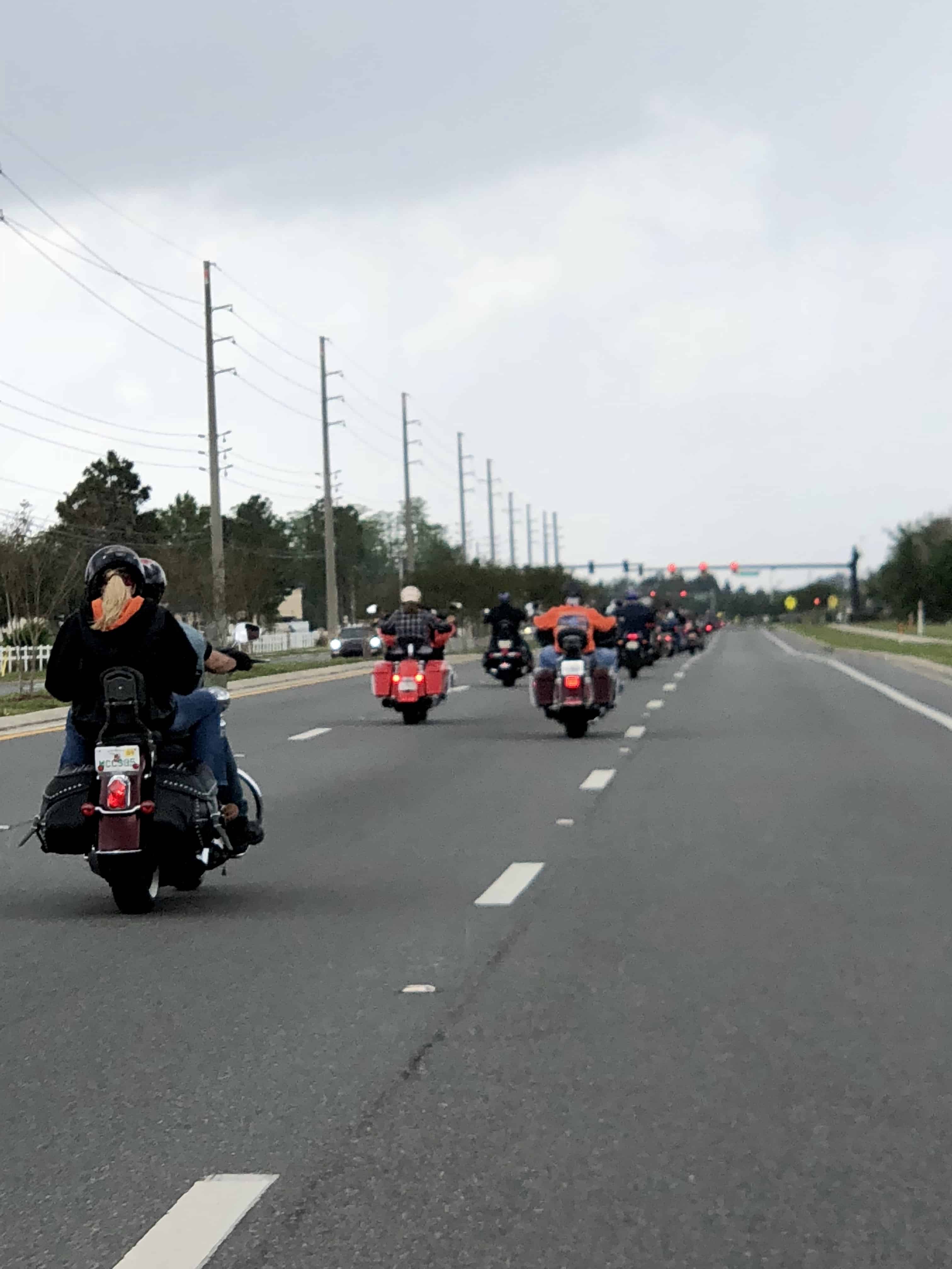 The ride began as the Pigs took over Lake Nona. We passed local “landmarks” such as the newly-opened DriveShack and made our way toward Narcoossee Road. Making our way through the scenic route, we ended up in St. Cloud and even Kissimmee before we came back down Boggy Creek Road and passed what will soon open as the Amazon Fulfillment Center. The Iron Pigs rallied as the flood gates opened and our sunny Florida turned into our spring rainstorms. Not a single rider hesitated. They were ready for this ride, and no amount of rain or inclement weather would stand in their way. The club’s website states, “These kids fight the battle day in and day out, rain or shine.”