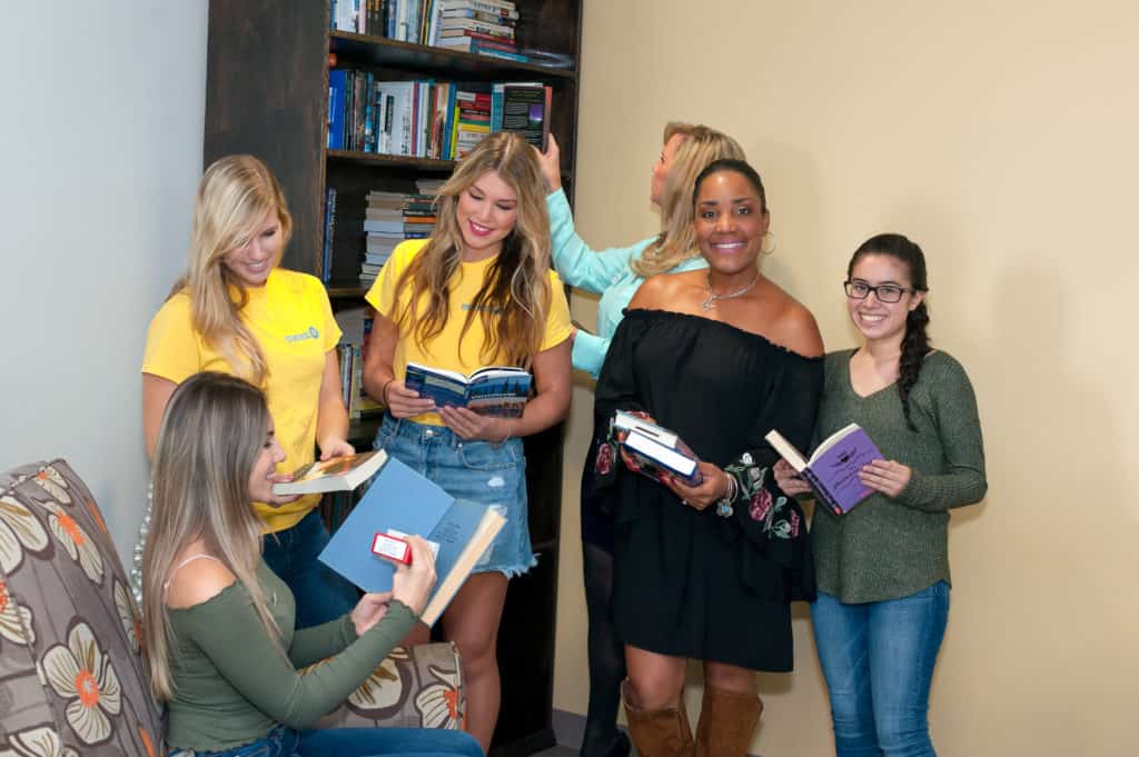 Teamwork from the Rotary Club of Lake Nona Lunch, building materials from Home Depot and design inspiration from Maurita Sutton Brown of Designs by M-Simply Maurita have worked together to produce a bookcase for the Little Free Library that is now open for residents at the Ronald McDonald House. Every donated book has a stamp inside to show the teamwork of the community. The Lake Nona High School Interact Club stamped more than 350 books for the bookshelf. It is truly an honor for our community to share in such a project.