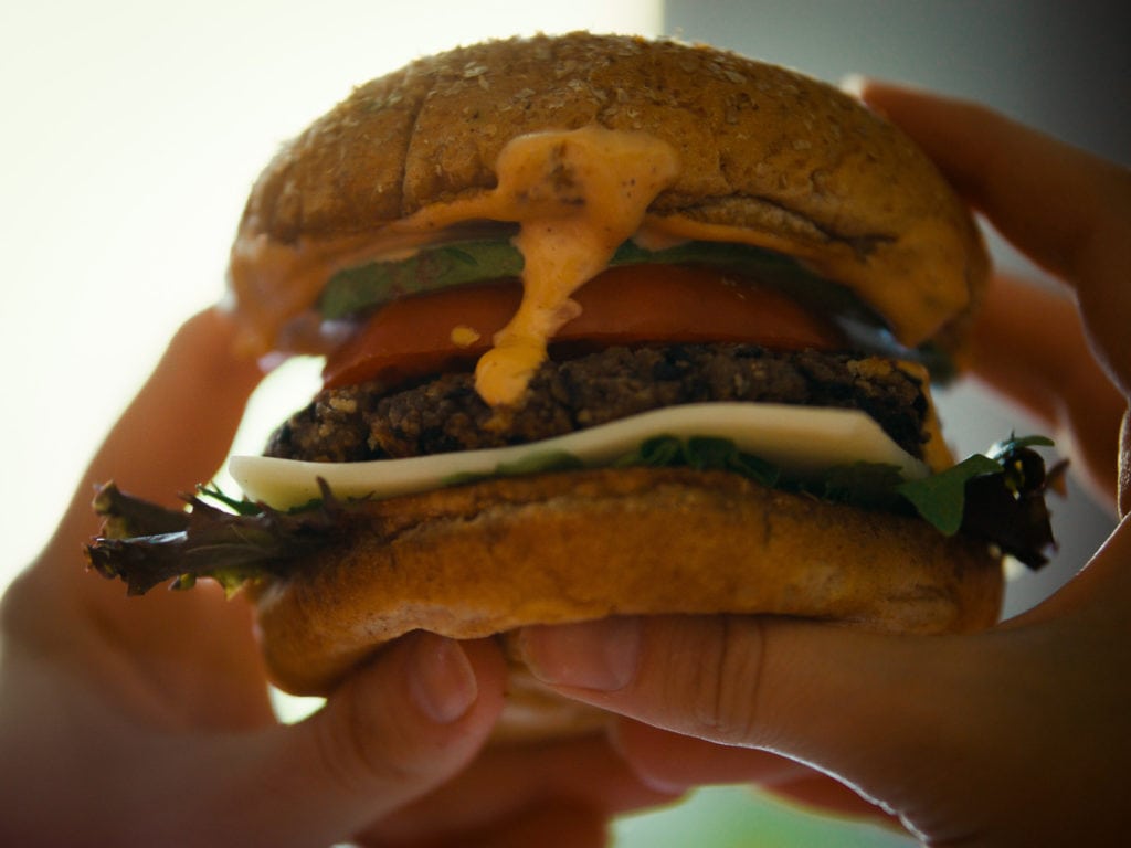 Okay, can I complain about my cholesterol for just a moment? As a moderately healthy 31-year-old who cooks often, never eats fast food, and eats all the vegetables, I was appalled at the nerve my doctor had telling me I’m officially in the high category of cholesterol. Perhaps there is a genetic component, or perhaps it was the several months of eating only saturated fat from the keto diet I just did … definitely the latter. I’m being facetious, of course. My doctor is an angel, and eating nothing but saturated fat and limited fiber didn’t hurt my already elevated cholesterol. After getting my act together and researching how to lower my levels, beans were on every list of what to eat. I know what you’re thinking … is mayonnaise on that list? No. I only use a little, and it makes all the difference to the overall burger. Rounded out with a whole grain bun, a little reduced fat Swiss cheese, avocado, tomato and lettuce, and I’ll be back in my physician’s good graces in no time!