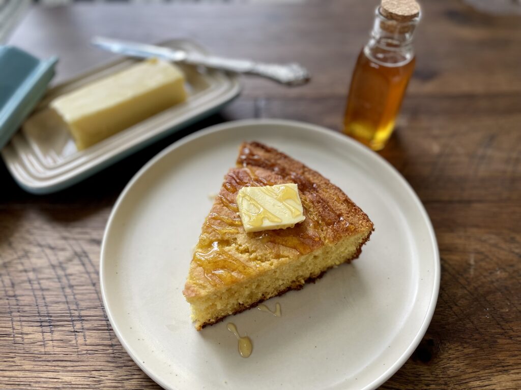 I can’t think of a better addition to a 4th of July barbecue than a giant skillet of cornbread. A warm square of soft cornbread smothered in butter and honey is sure to please. If you’ve read any of my articles in the past, you know that I can’t stop myself from peppering in history. It really doesn’t get more American than cornbread. And by American, I mean a melting pot of cultures and traditions. Of course, corn is native to North America, but we wouldn’t know how to prepare it if it weren’t for the kindness and mercy of Native American tribes. English colonists brought their bread-baking traditions and dairy cows from England. Native Americans were making corn bread prior to colonization, but without wheat or dairy on the continent, it looked much different than the fluffy, buttery cornbread we know today.
