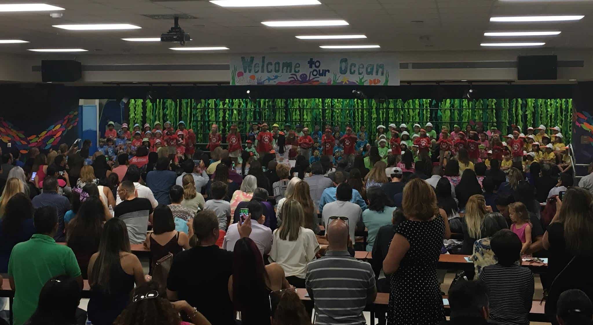 On the morning of Wednesday, May 9, our kindergarten team, under the guidance of our music teacher, Mrs. Grande, hosted Fish in the Ocean, a kindergarten musical. Our cafeteria was transformed into an ocean as our kindergarteners made the ocean come to life for their families.