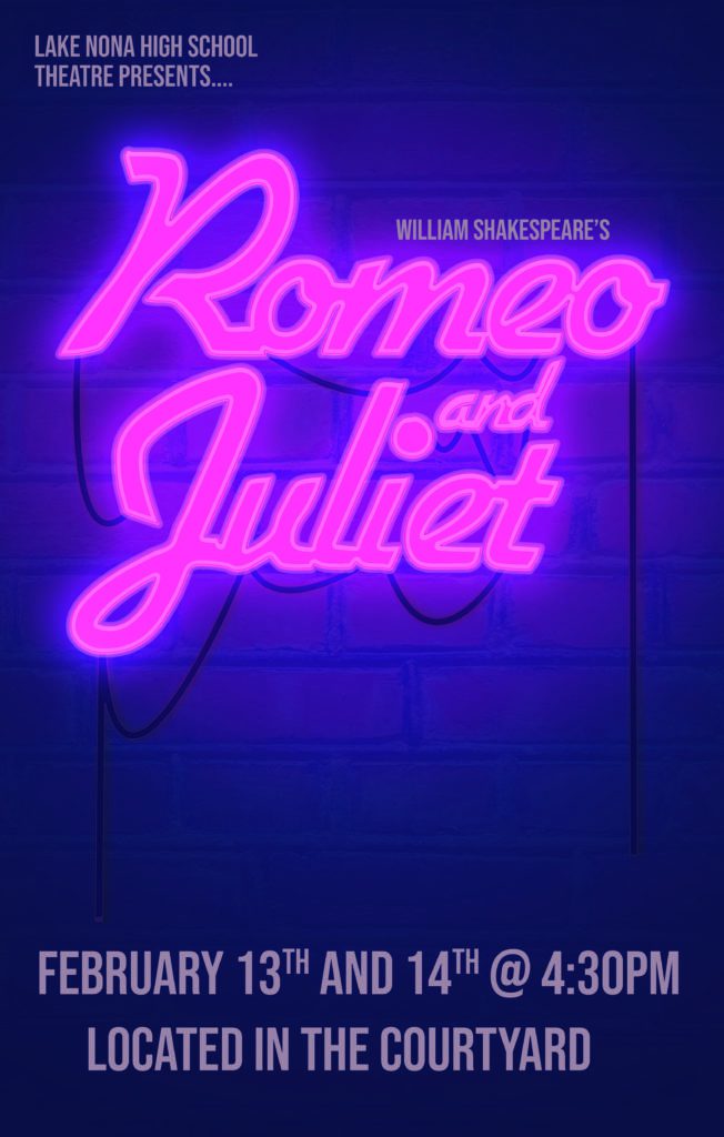 This spring, there will be many opportunities to see the students of Lake Nona High School’s theatre department create art in a safe and socially-distanced way. On Valentine’s Day weekend, Troupe 7434 will be producing the classic love story, Romeo and Juliet. You will be able to see this fun twist on one of Shakespeare’s classics online after the performance. We will be posting more details on our Youtube and Facebook pages.