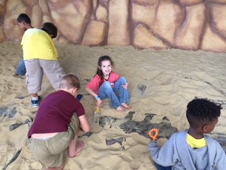 First grade students and teachers at NorthLake Park Elementary School visited Dinosaur World in Plant City. The children were able to participate in many interactive shows. They took a guided tour with a “paleontologist” through a cave, a dig site and a workstation. They watched a demonstration on the correct way to excavate a fossil from a site and then were able to dig for their own fossils in a stocked area that had various items. The children selected their three favorite fossils to take home. In the Dino Gem Excavation, the children found gems, arrowheads and real minerals that they took home. The Bone Yard was a big hit as they had tools to start excavating a 27-foot skeleton located under the sand. This was truly a fascinating journey of learning in a prehistoric playground for our first-grade students.