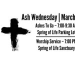 On Wednesday, March 1, you are invited to join Spring of Life United Methodist Church to begin the Christian season of Lent. Stop by our parking lot for "Ashes To Go" between 7 am and 9:30 am - Pastor Josh will be available to pray with you and share the ashes. You are also invited to join us at 7 pm for our Ash Wednesday worship service. Nursery will be provided for … [Read more...]