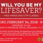 February is Heart Month! Join the Orlando Fire Department in the national movement to end heart disease. Learn how to save a life by taking a free, 30 minute Hands-Only CPR class. We will teach four classes, one every half-hour. You are welcome to attend any class time slot. For more information, call 407.246.4277 or visit cityoforlando.net/takeheart. … [Read more...]