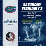 USTA National Campus hosts College MatchDay - Florida vs. Florida State (Men) on the Collegiate Courts at 6pm ET. Gates open one hour before match time, allowing fans to enjoy the family-friendly atmosphere, games, food, drinks and much more. Be sure to be in your seats for the start of the match to enjoy pre-match fireworks! Younger fans can enjoy a FREE Kids' Clinic … [Read more...]
