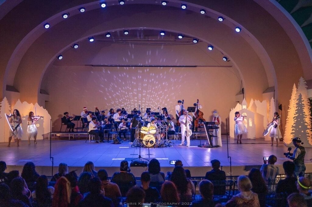 Experience the 11th Annual Violectric Holiday Show on Saturday, December 9, 2023 at 7pm at Walt Disney Amphitheater at Lake Eola Park located at 99 N. Rosalind Avenue, Orlando, Florida 32801. For more information on Violectric and booking, visit http://violectric.net. For more on Violectric Education Programs, visit http://education.violectric.net/.
