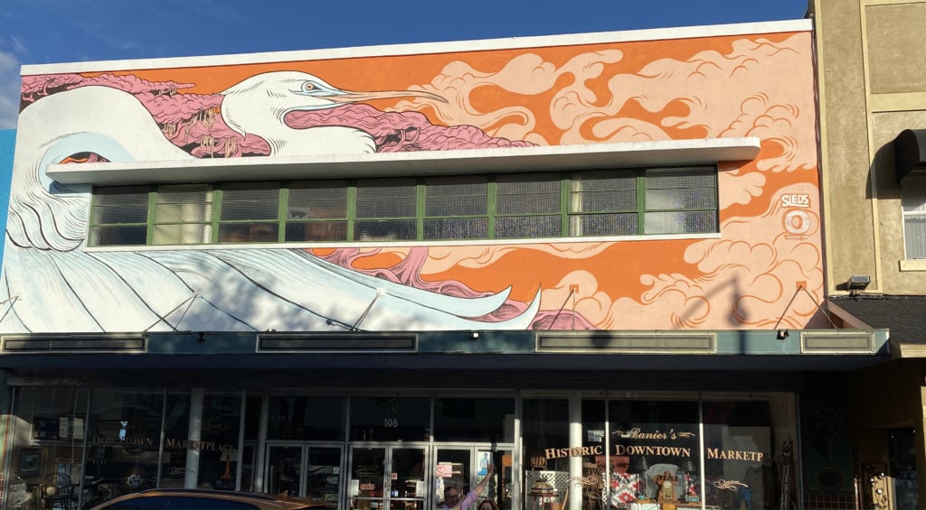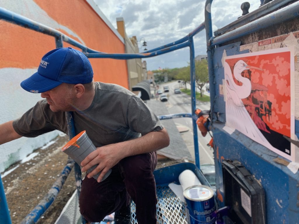 SL: Most jobs present their own unique challenges. But the one that sticks out the most is probably my mural in Kissimmee. The mural is 50 feet long and 20 feet tall. What made it challenging was that it was on the second floor of a building. So I had to use a crane lift, and I was 40-50 feet up in the air on a really busy street. When you are up that high, it feels like the smallest movement you make is going to flip the crane over. But I eventually got used to it. And after I got over the mild vertigo, it was business as usual.
