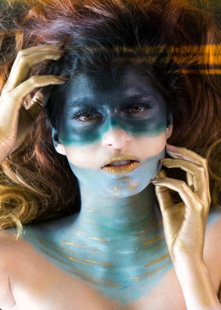 KB: There are certain artists that inspire me often – Bella Kotak (a fine art photographer), Vlada Haggerty (a makeup artist famous for lip art), and Art Wolfe (a National Geographic photographer). A not-as-well-known photographer that has always moved me for his editing style is Chris Rona Photography (in Washington state). I admire and study many artists, for which I consider when developing my own techniques for my artistic process. However, the true vision in the time of pure creation mostly comes from playing (with makeup, lights, wardrobe, etc.), seeing something in a movie or magazine, or just emulating a vision in my head in front of me.