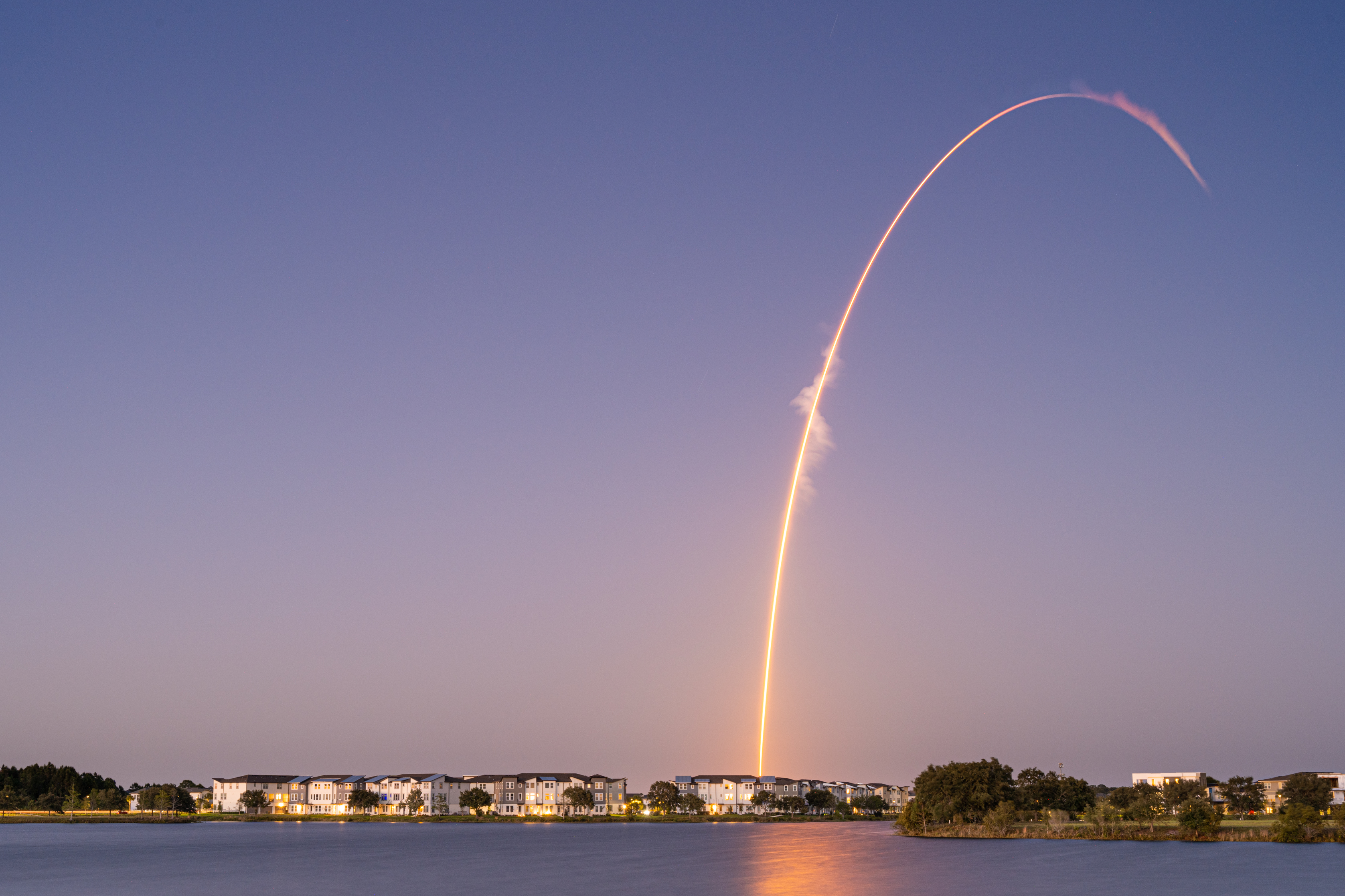 The evening of the launch provided us with remarkably clear weather. We, therefore, decided to shoot the ViaSat-3 Americas mission from right here in Lake Nona. Even in the relatively bright twilight skies, Falcon Heavy’s 27 Merlin engines shined brightly from over 70 km (~43 miles) away. The beautiful ambient light during this hour also greatly contributed to the scene – as seen in both launch streak shots.