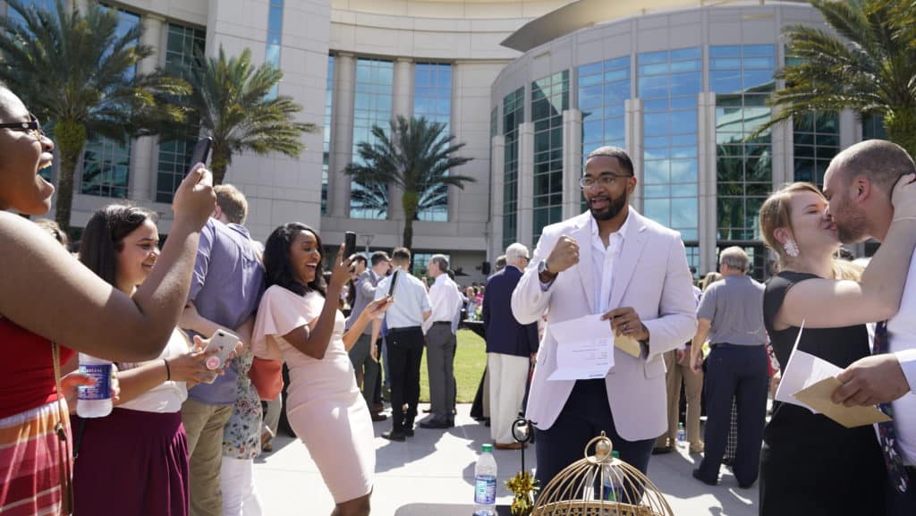 Gabriel Williams opened his match envelope, fist-pumped and cheered, “I got Nemours!” – capping off March 15’s Match Day at the UCF College of Medicine that saw three students enter a new pediatric residency at Nemours Children’s Hospital down the street in Medical City.