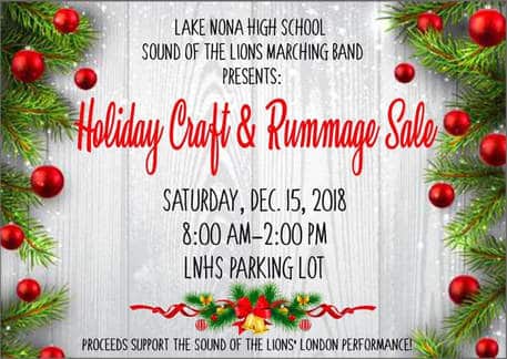 The LNHS Band is holding a “Vendor Fair & Rummage Sale” on December 15th from 8am-2pm. Band families can set up a booth (no charge) and all monies collected that day will be credited to their band student’s individual account to be used for the London trip OR other band expenses. Vendors are invited to register ($100 per booth) and a referral credit will be given to the student’s individual account that recruited that vendor for the event.